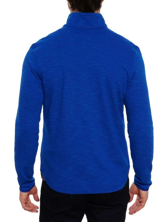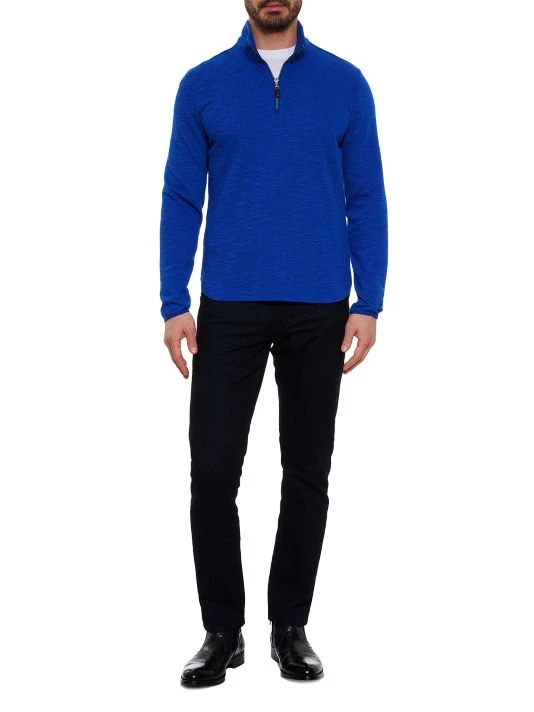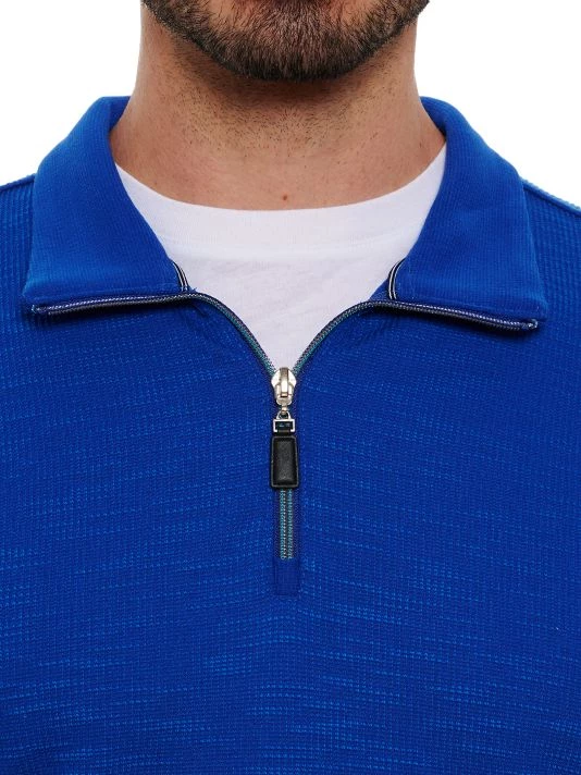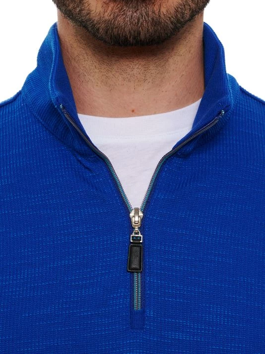 Made of a rayon blend, this quarter-zip sweater features long sleeves and a mockneck.