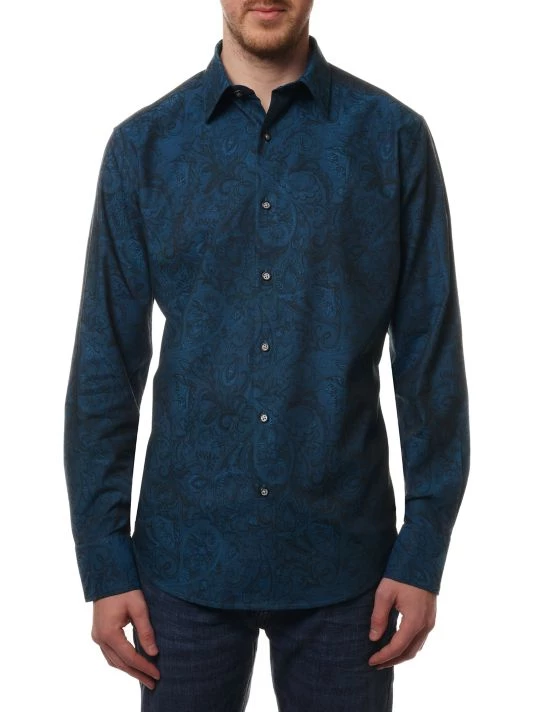 A regal paisley print lends sophistication to this classic button-down, cut from crisp cotton with an added touch of stretch.