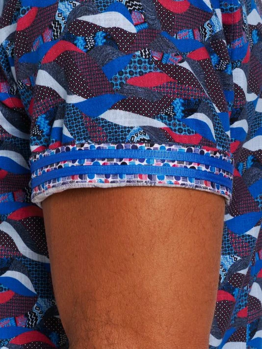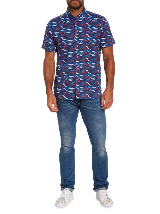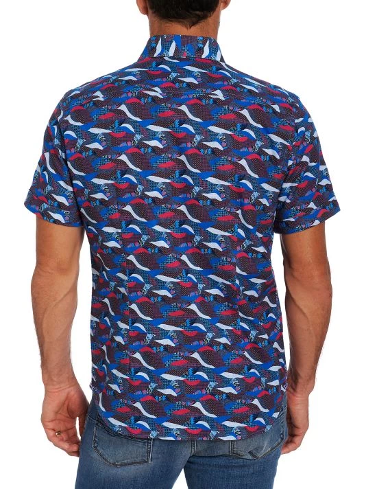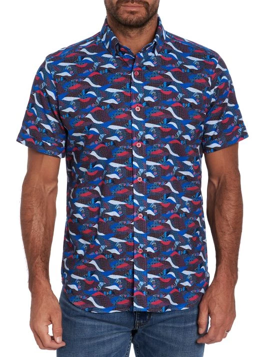 From the Robert Graham Collection. This short-sleeved shirt is elevated with a patchwork waves print.