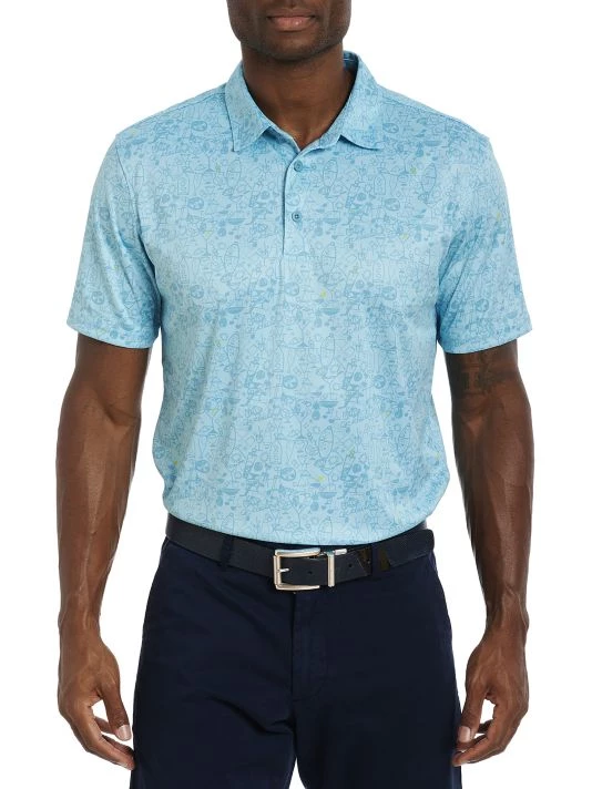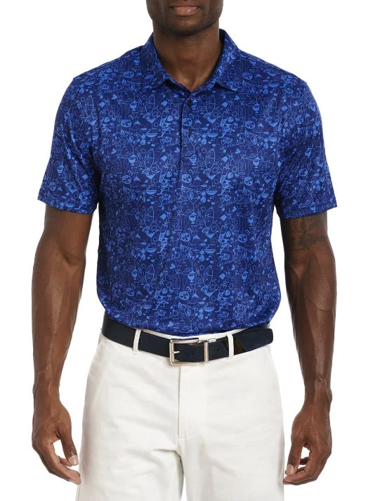 From the Robert Graham collection. Shake things up with this mid-century cocktail print polo shirt, crafted of moisture-wicking, breathable performance stretch fabric.