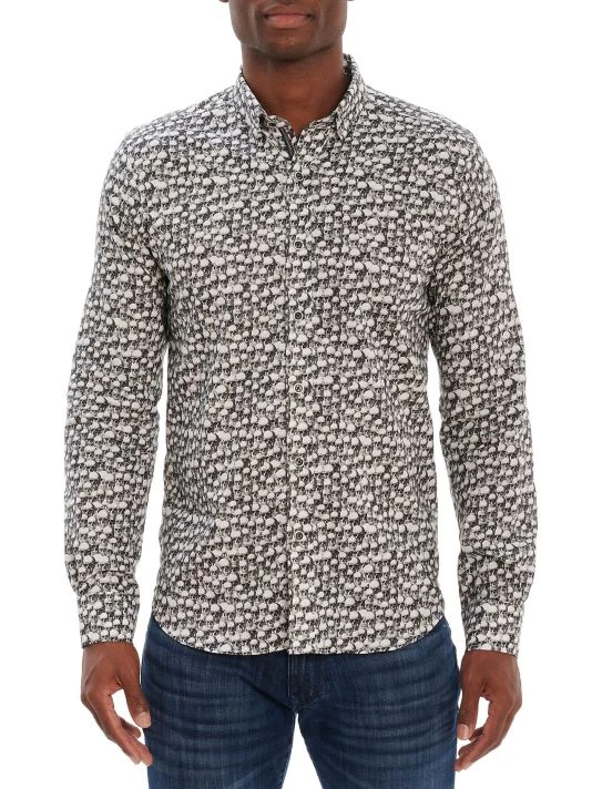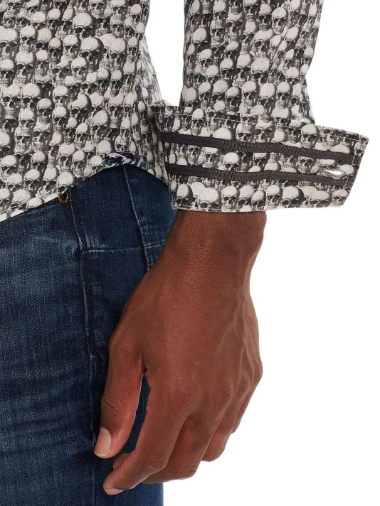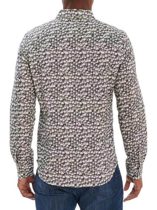 This slim-fit woven shirt showcases a skull print.