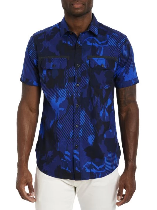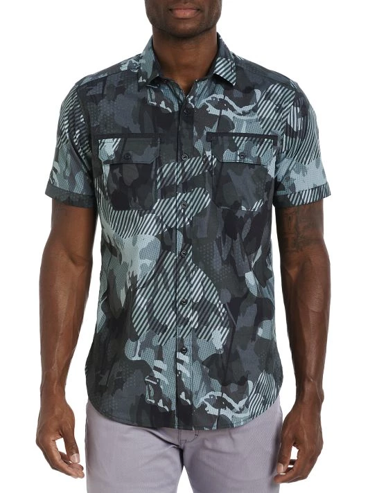Stripes, camouflage print and pixelated dots cover this printed stretch cotton shirt, designed with a classic fit.