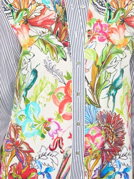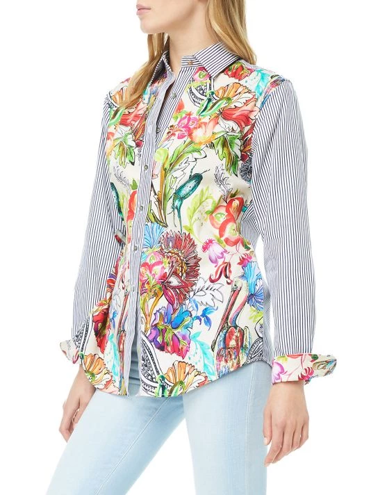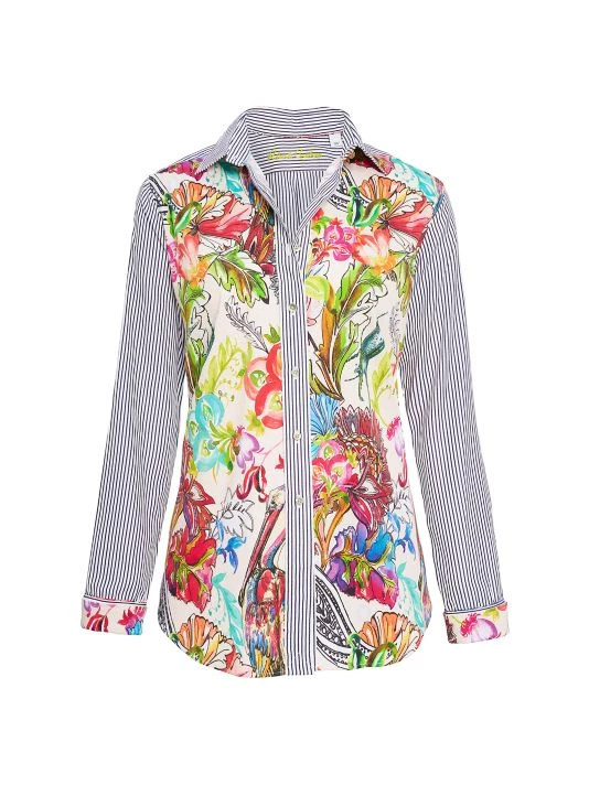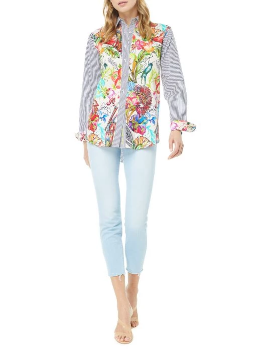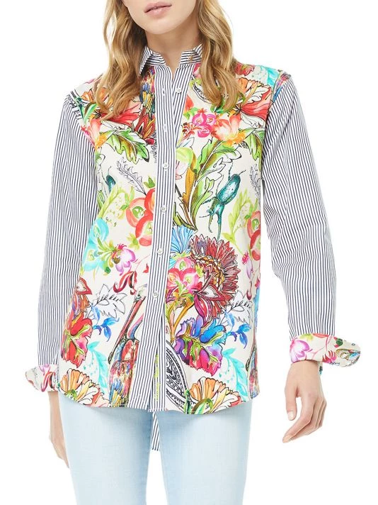 Crafted of cotton, the Carrie shirt by Robert Graham features classic banker stripes and an oversized floral print for a fun mix of patterns.
