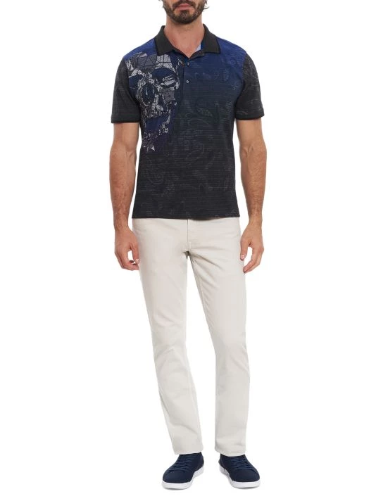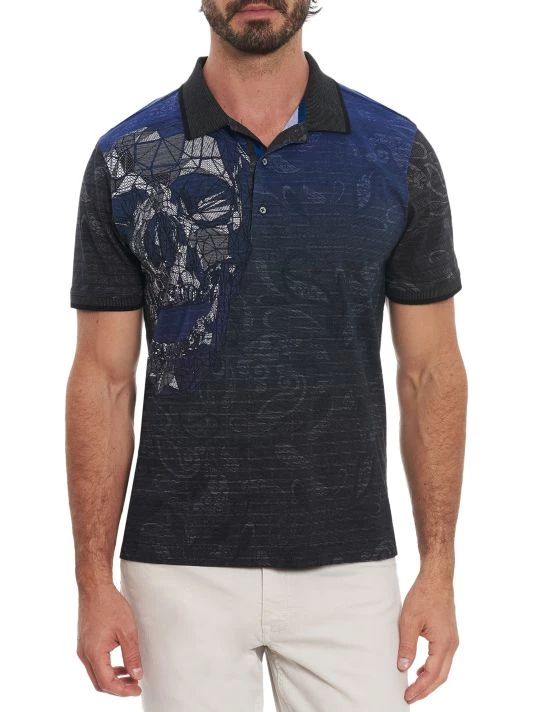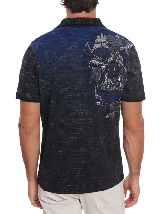 A dramatic skull and subtle paisley print styles this short-sleeve cotton jersey polo.