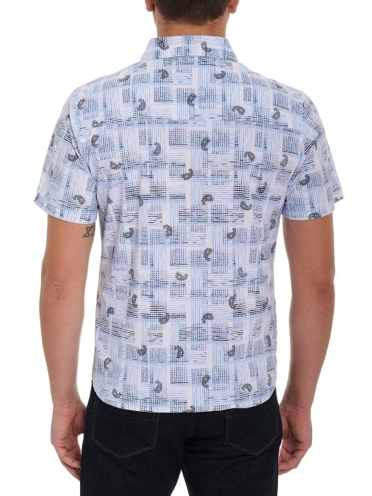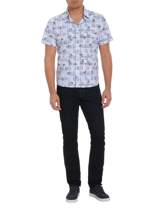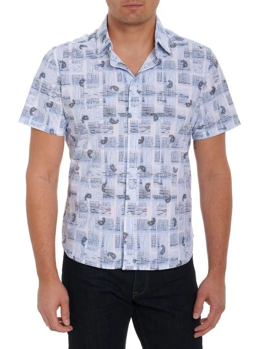 Cut in a short-sleeve, classic fit, this Chambers knit shirt from Robert Graham showcases a graphic check pattern accented by paisleys.