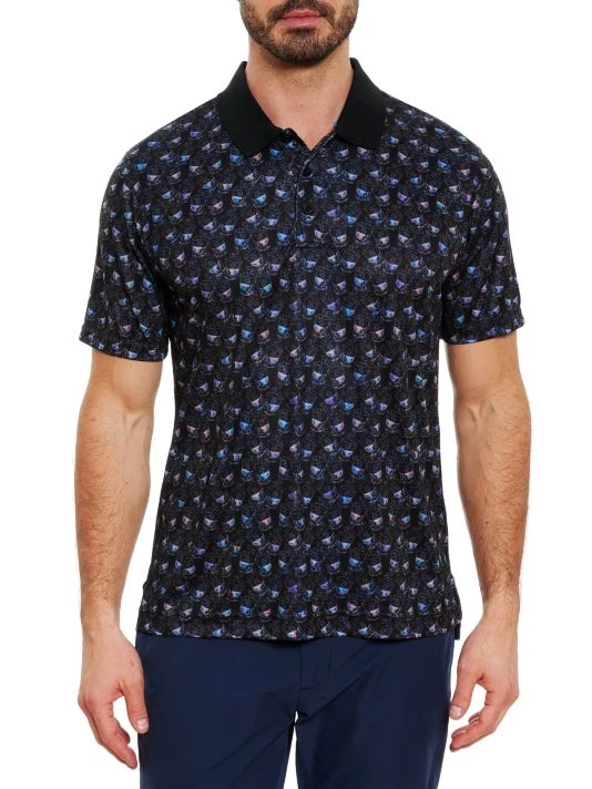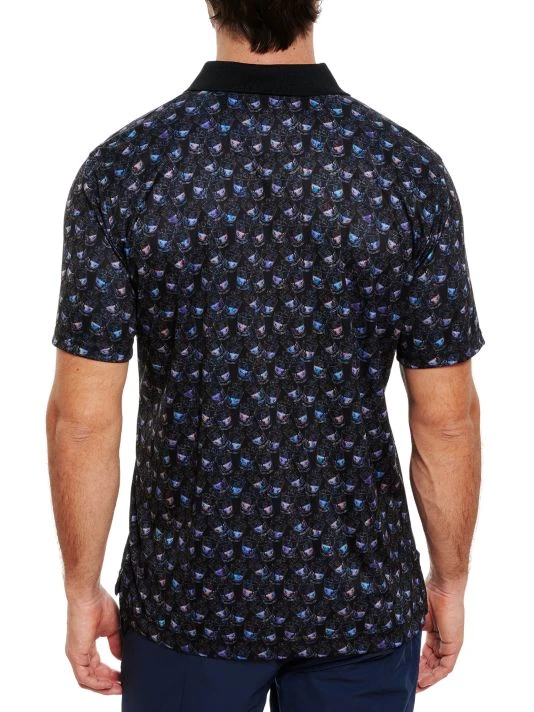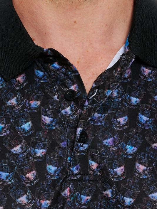 Designed in the brand’s performance pique knit, this drinking glass printed polo offers moisture-wicking properties to keep cool.