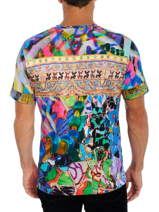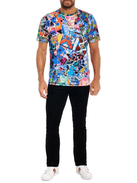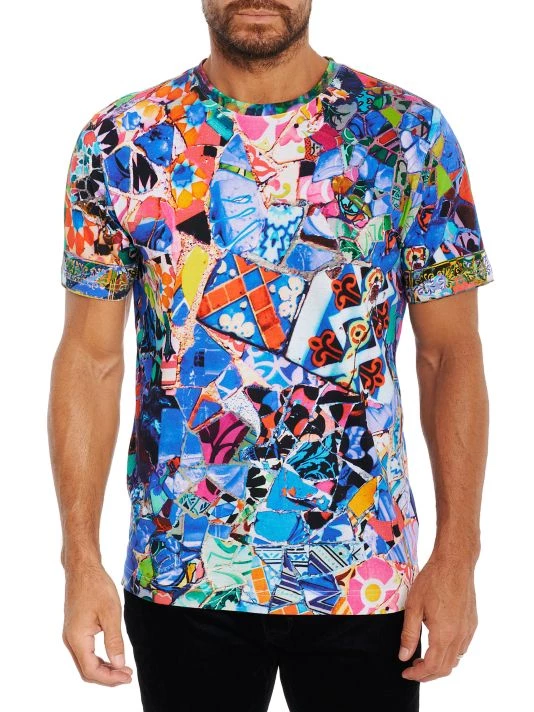 A classic cotton t-shirt detailed with a colorful abstract mixed print.