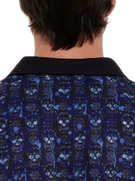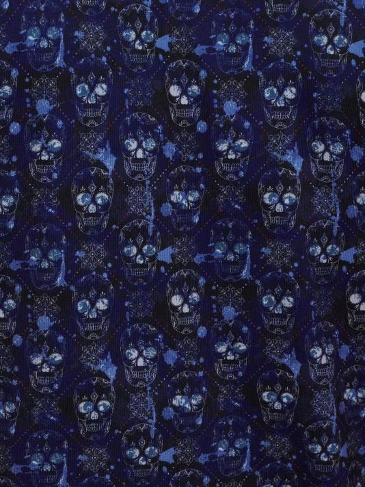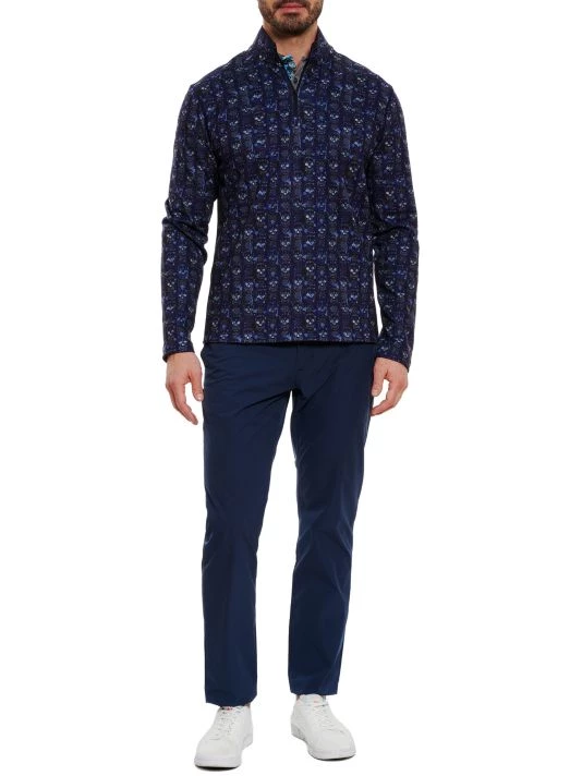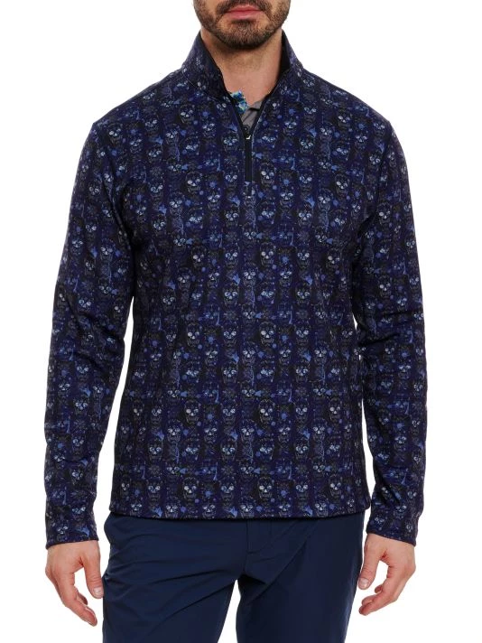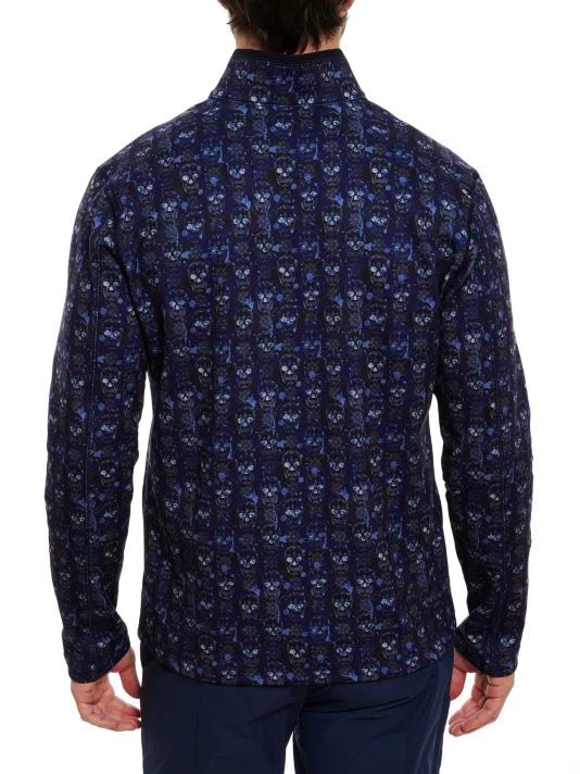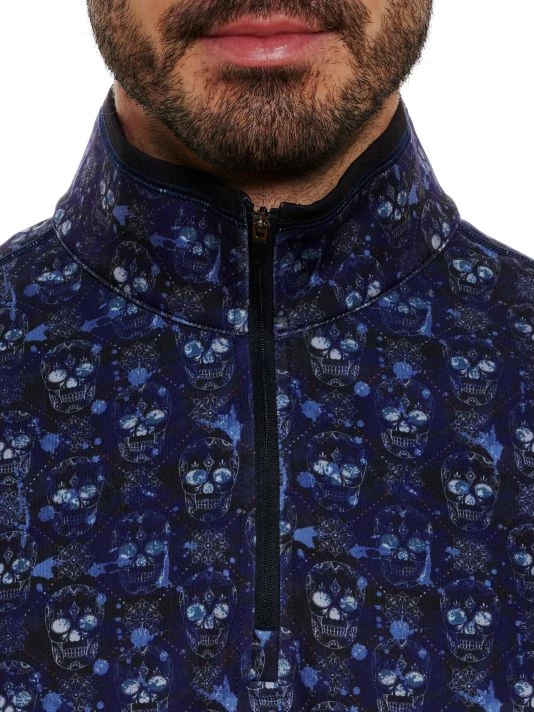 With a skull print, this quarter-zip sweater features a mockneck and long sleeves.