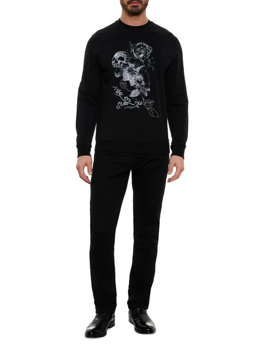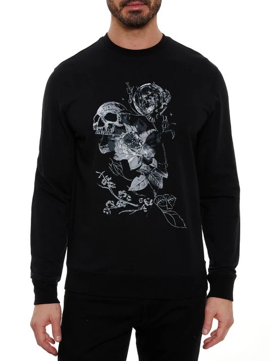 Made of a cotton blend, this pull-over sweatshirt features a graphic on the chest and a crewneck.