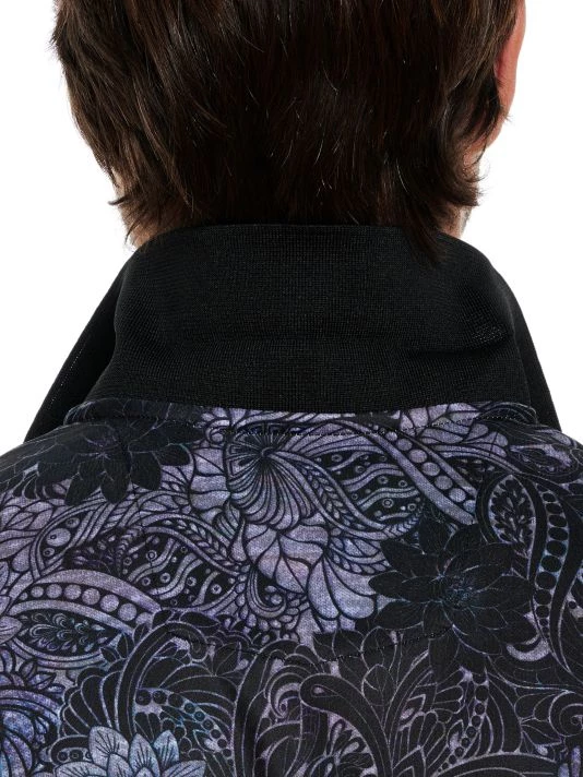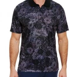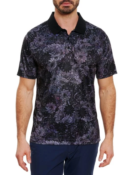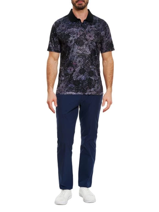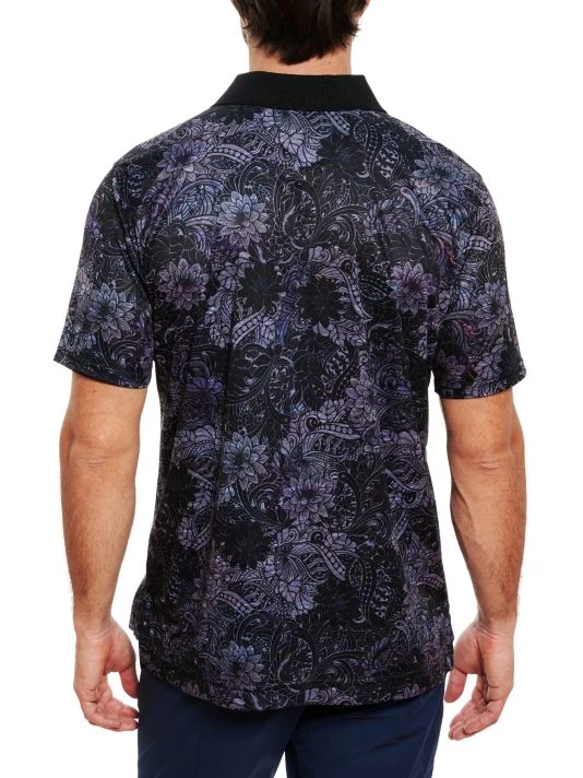 Pique knit polo with contrast dahlia print and moisture-wicking properties to keep cool.
