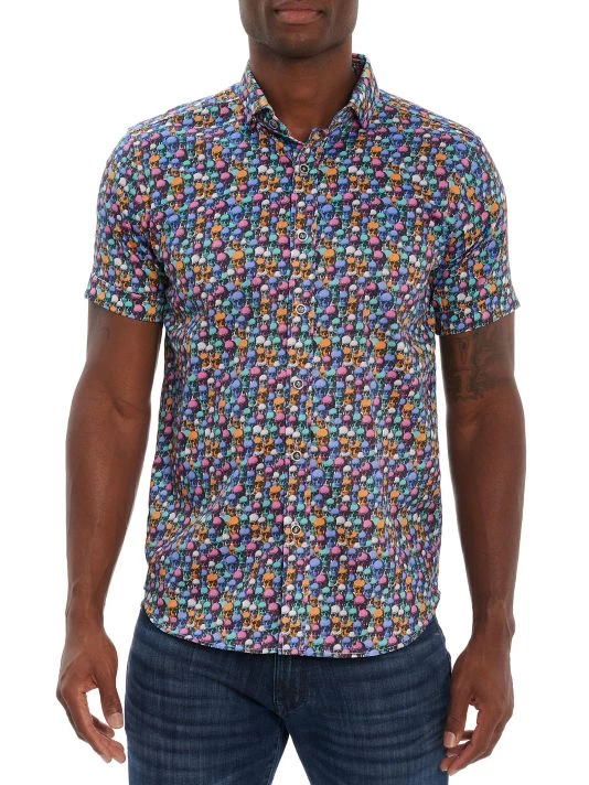 Crafted of cotton, this Dead Ahead woven shirt from Robert Graham features signature skull patterning.