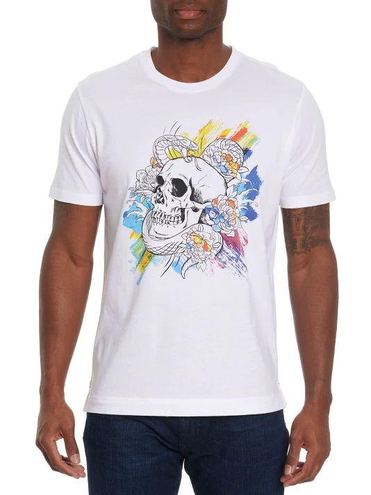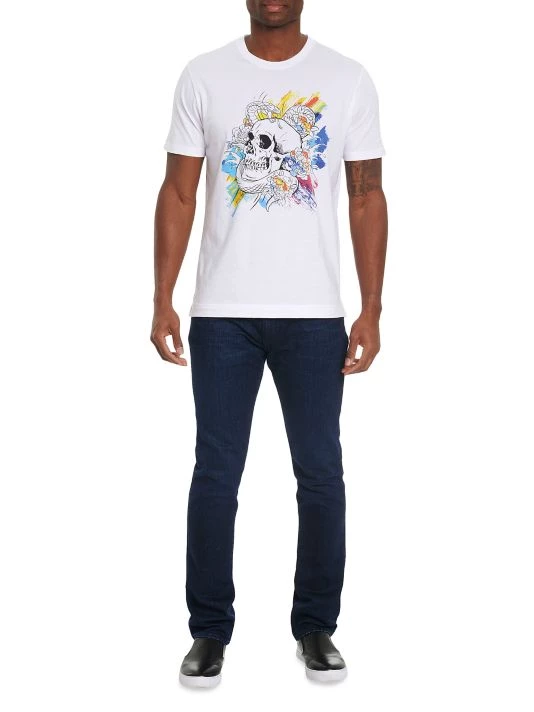 Crafted of cotton, the Deadliest Catch crewneck T-shirt by Robert Graham is adorned with a vibrant skull and snake motif.