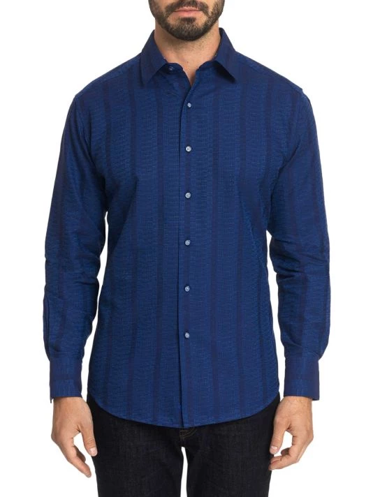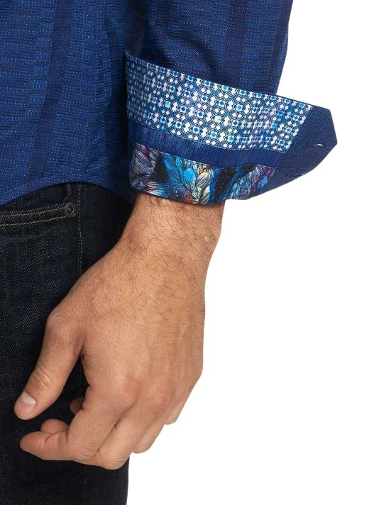 Consider RG the patron saint of non-solid solids. This novelty weave is a triple contrast pattern with a subtle dobby throughout. Own it with both long and short sleeves.
