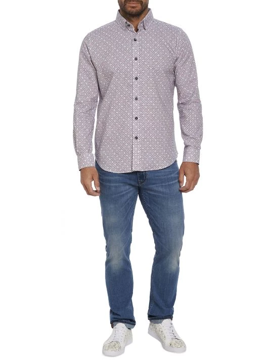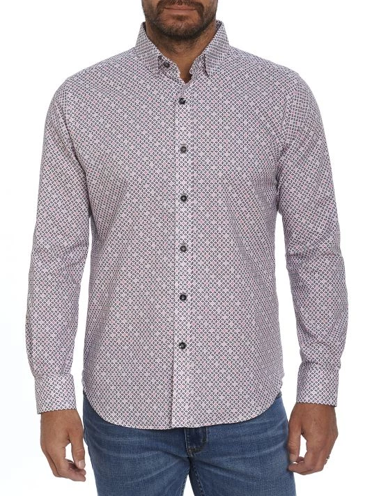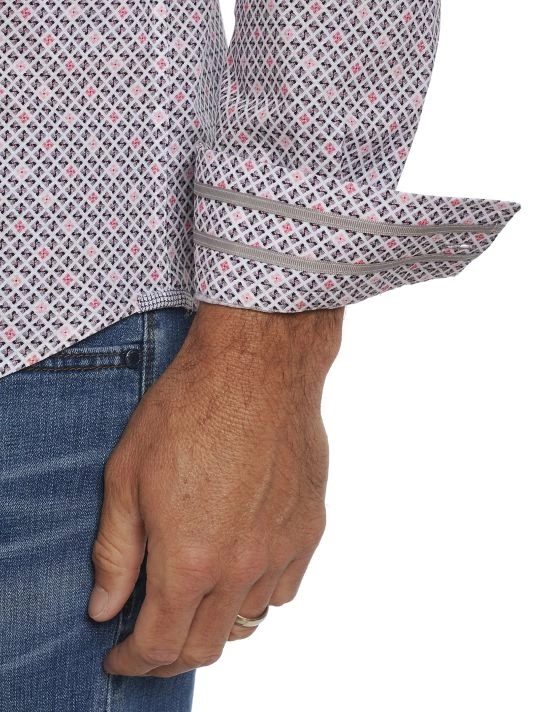 From the Robert Graham collection. A multicolor geometric motif adorns this tailored button-front shirt, crafted of cotton.
