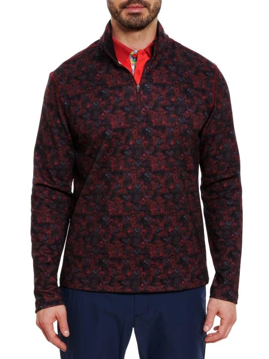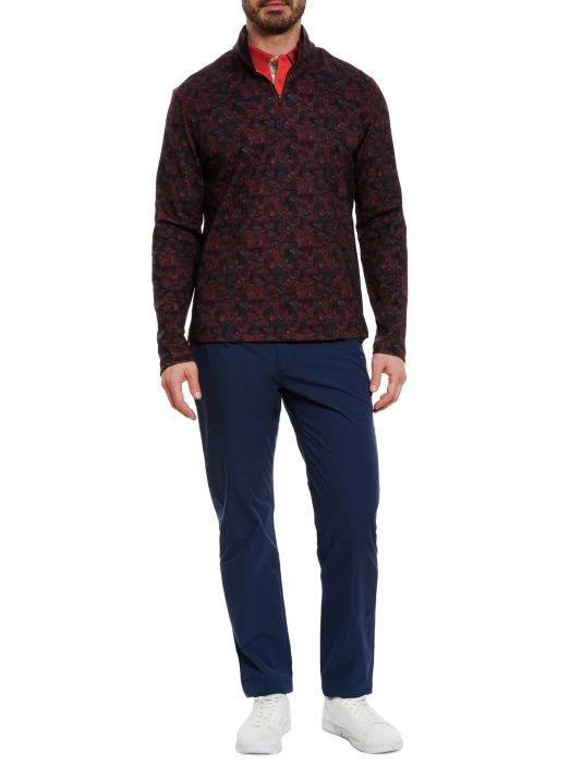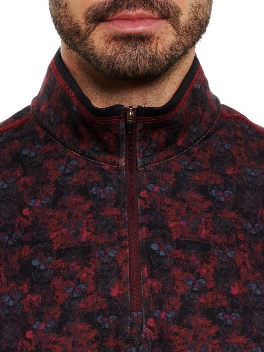 Quarter-zip fleece sweater with the brand’s signature floral skull argyle print and moisture-wicking properties to keep cool.