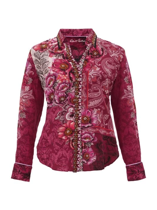 This Robert Graham long-sleeve shirt features a tapered relaxed fit in a baroque paisley print. A point collar and crystal details complete the look.
