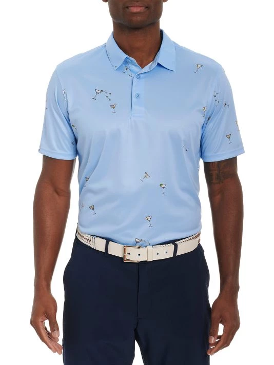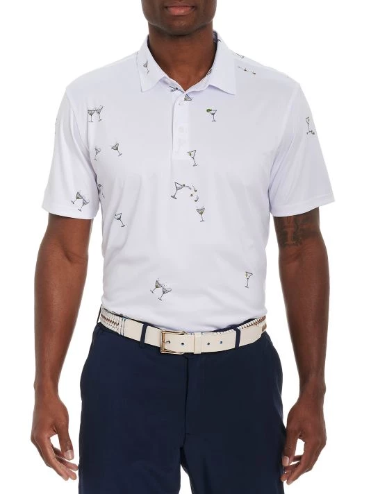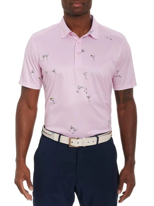 This Gibson knit polo from Robert Graham features a martini-glass print.