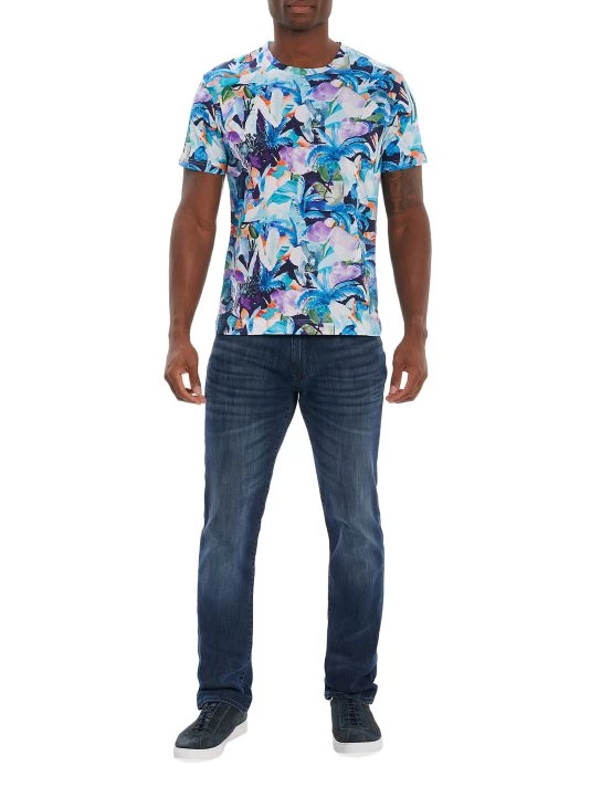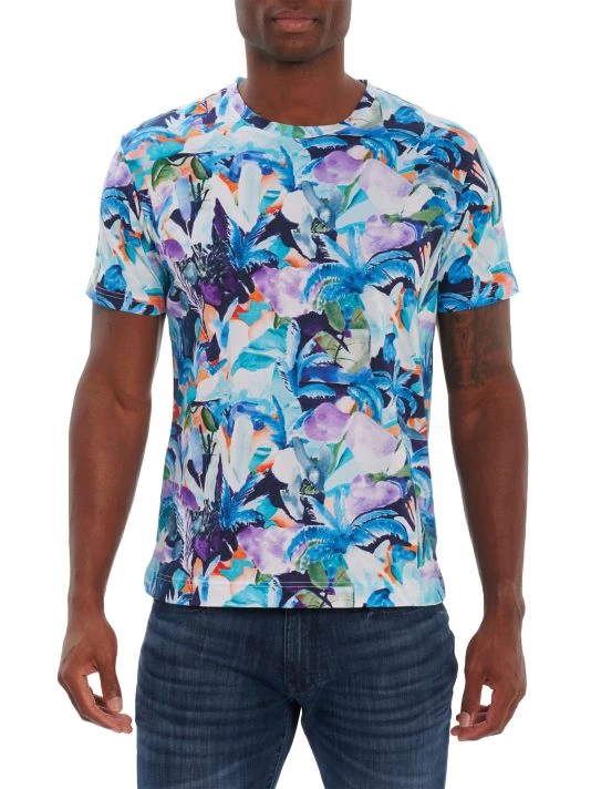 Crafted of cotton, the Haukland Beach crewneck T-shirt by Robert Graham is adorned with a collage of tropical motifs.