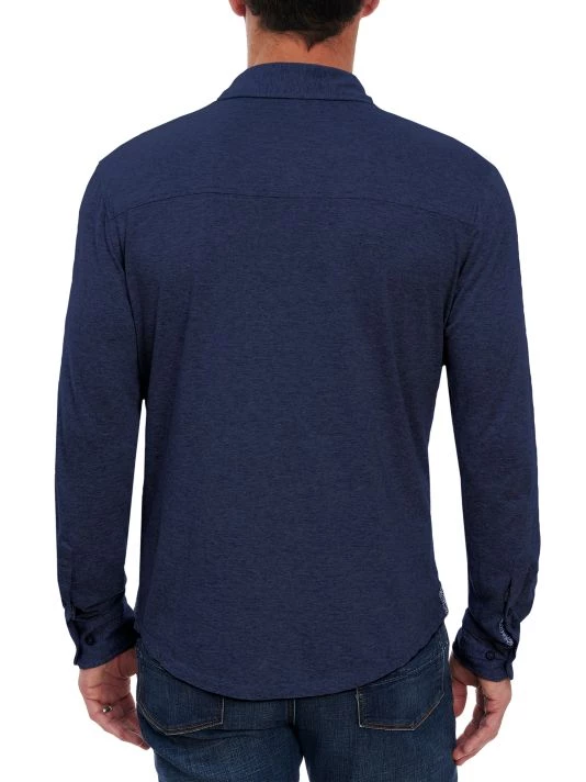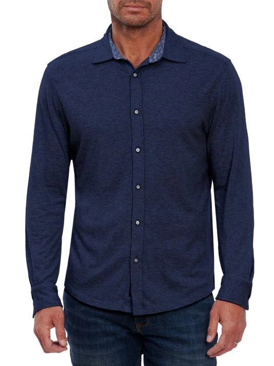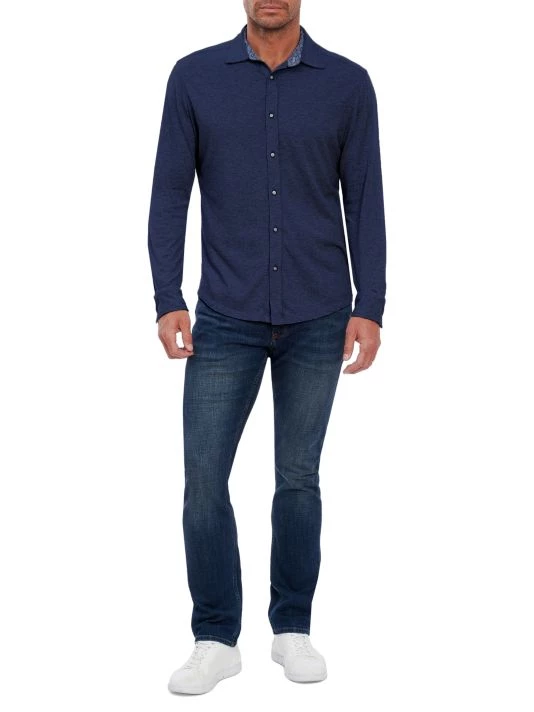 A lightweight jersey knit lends casual flair to this tailored long sleeve sport shirt.