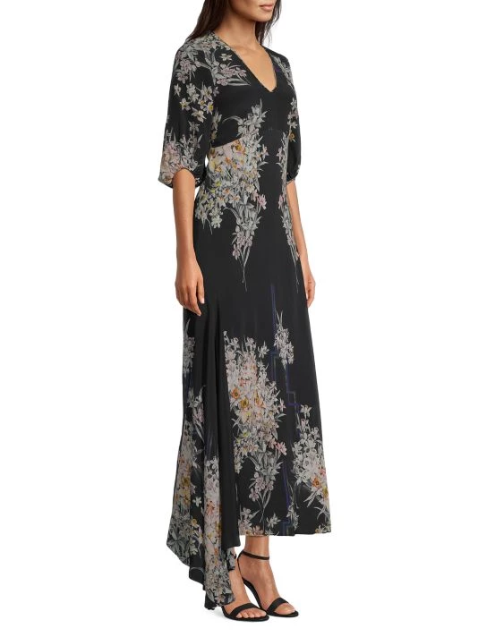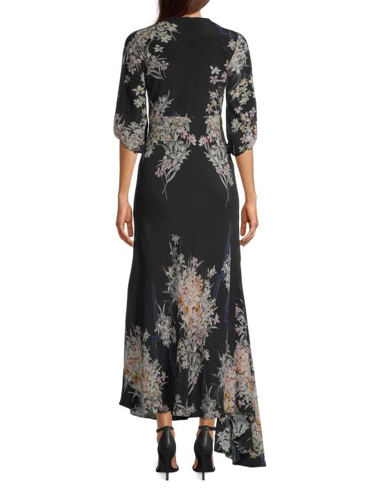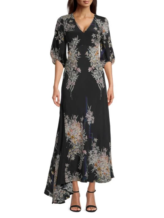 Crafted of silk, this maxi dress is detailed with floral motifs.
