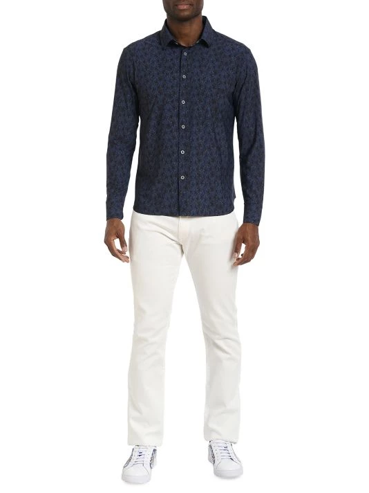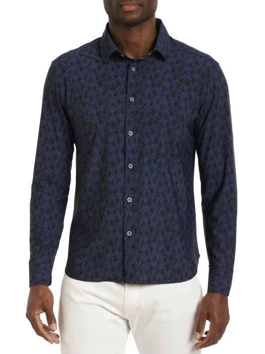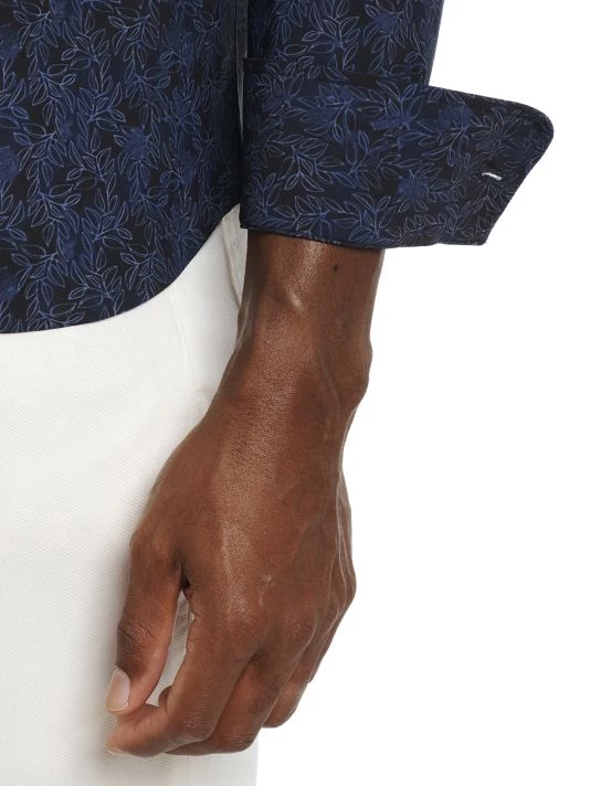 Contrast illustrated leaves cover this button-up shirt, cut from a breathable, lightweight fabric.