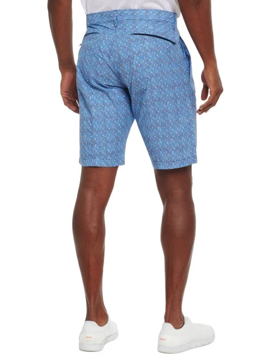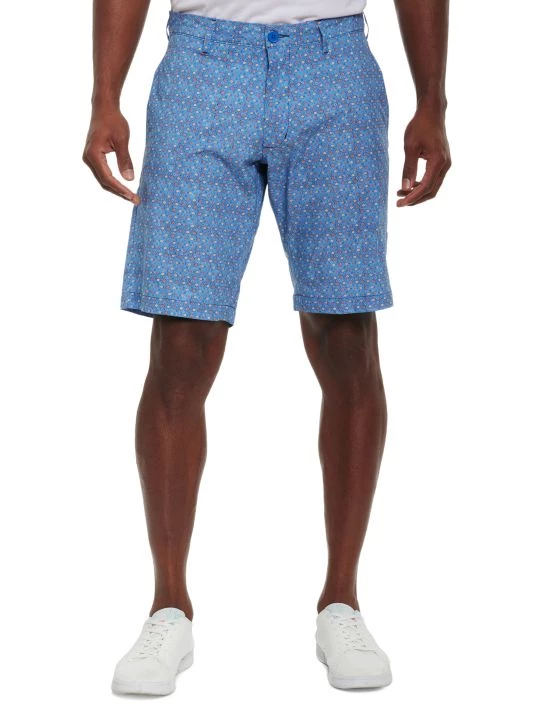 A multicolor geo dot print enlivens these soft cotton shorts in a tailored fit.