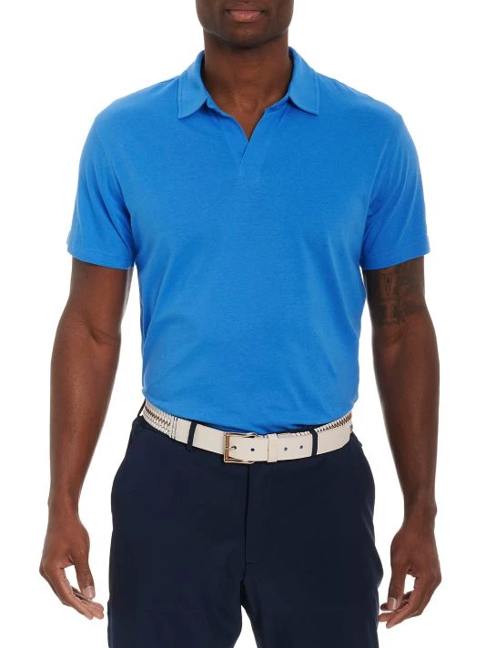 This short-sleeve Pacific knit polo features a self-fabric polo collar and soft cotton-modal construction.