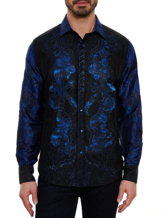 An intricate paisley print covers this luminous limited edition silk-blend button-up shirt.