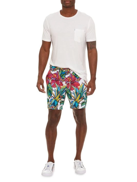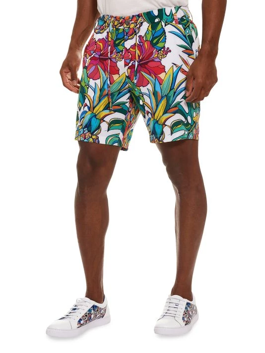 Robert Graham’s Pina Colada Beach To Bar shorts are styled in a floral print and feature a drawstring elastic waistband.