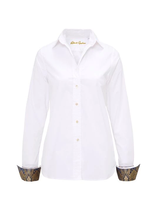 This silk-blend shirt is designed with a tapered waist and woven details along the sleeve cuffs.