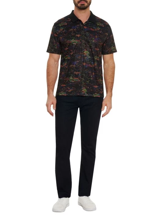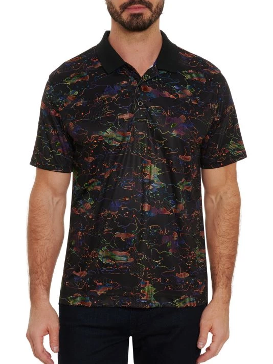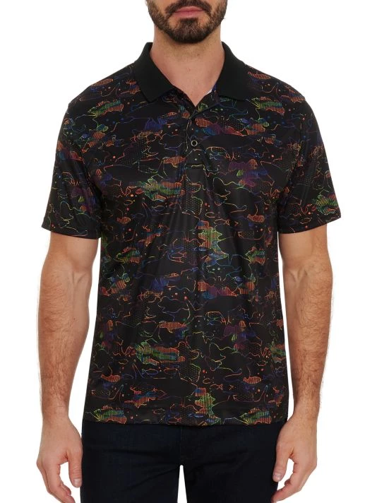 Multicolor shark print enlivens this luxurious cotton polo in a classic fit.