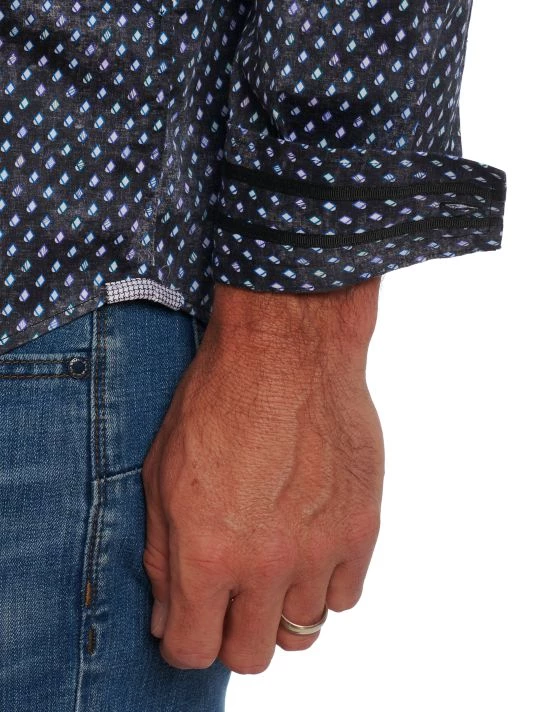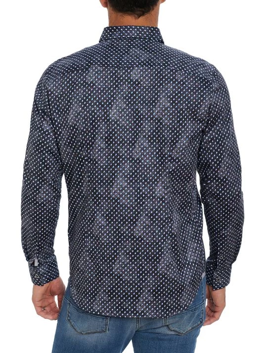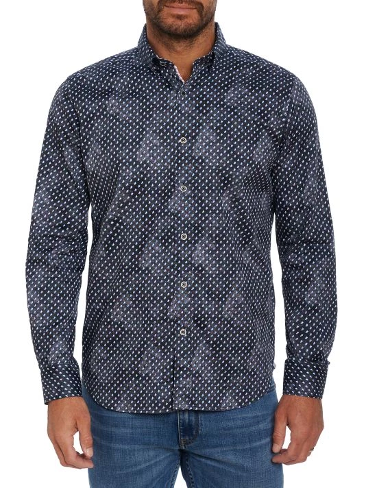 From the Robert Graham Collection. This woven shirt in a faded finish features a diamond-shaped print.