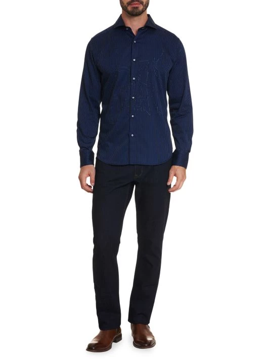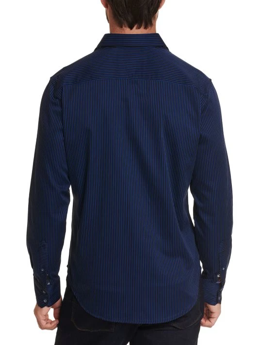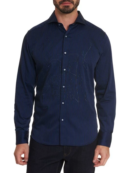 This 100% cotton sport shirt features metallic embroidery of an abstract kiss at the front and same great chadwick details you know and love. Flip the cuff to discover a cubist print.