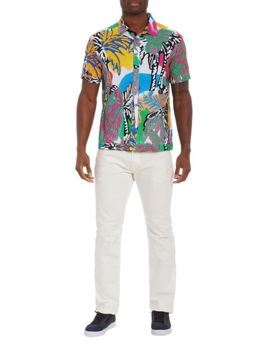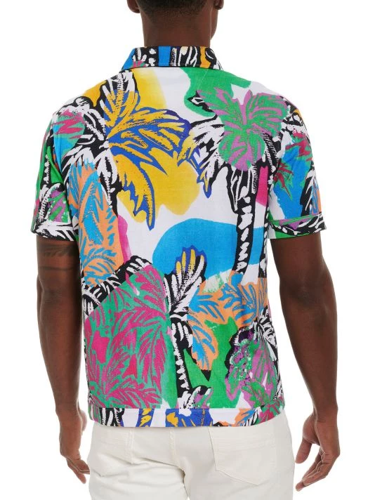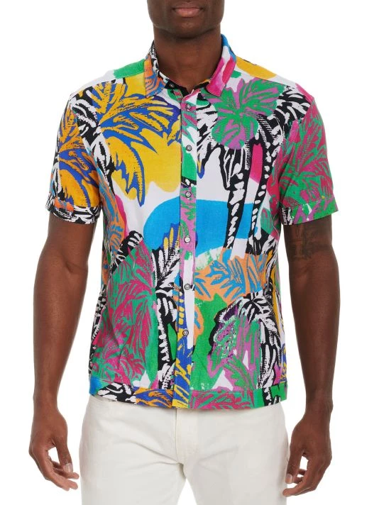 Adorned with a vibrant multicolor print, the Tres Palms Knit Shirt by Robert Graham exudes playfulness.