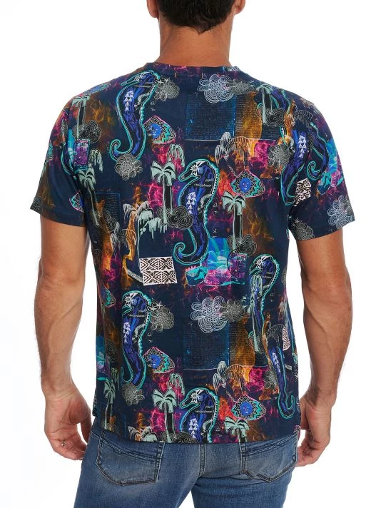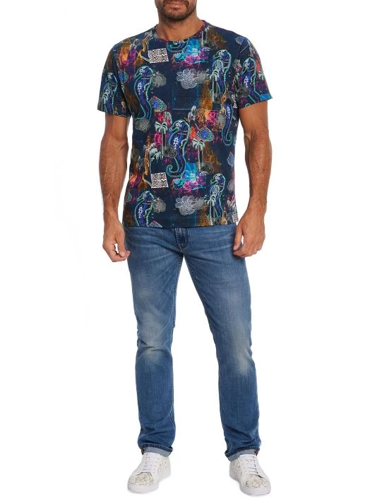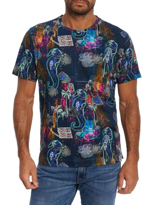Whimsical sea-inspired graphics cover this slim-fit cotton jersey tee.