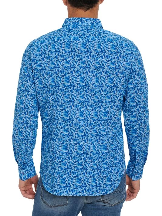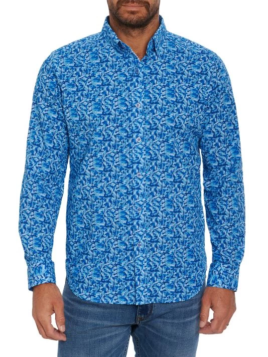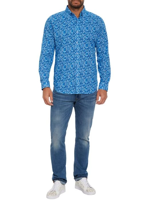 Contrast florals cover this stylish button-up shirt, cut from airy cotton to a slim fit.